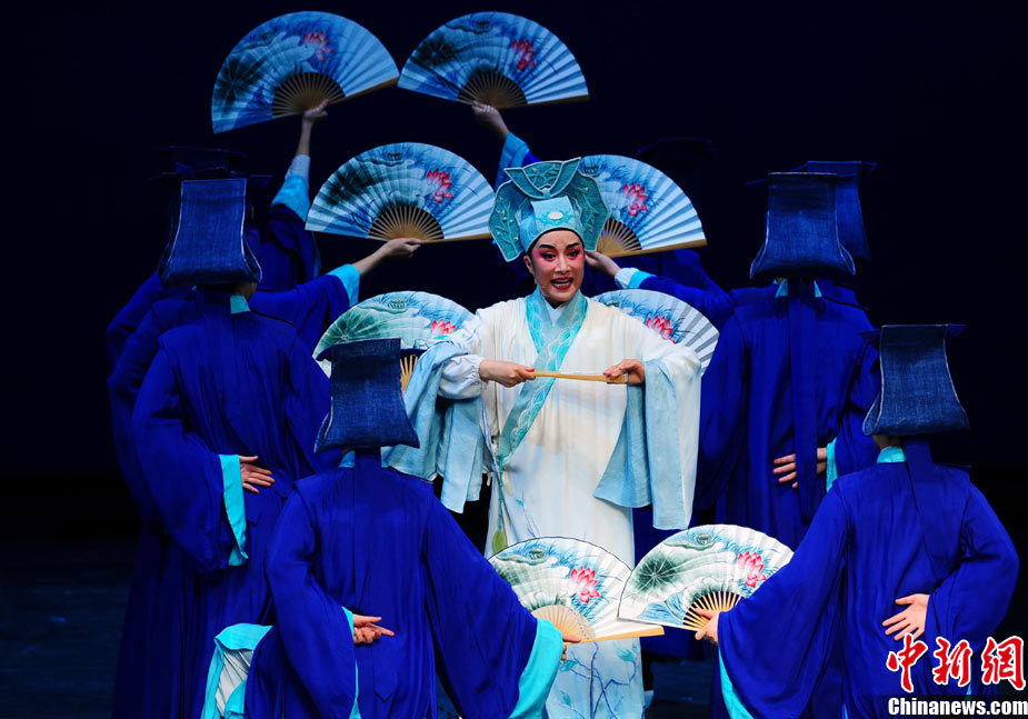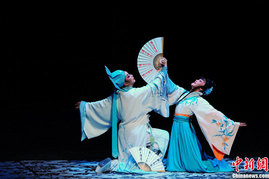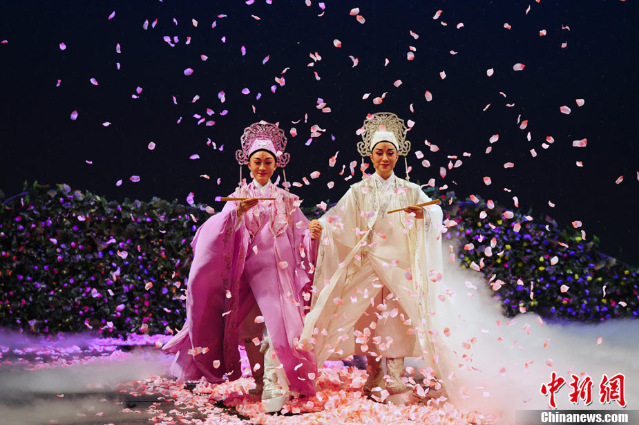 11月23日晚間,由浙江小百花越劇團帶來的新版越劇《梁山伯與祝英臺》在北京國家大劇院上演,著名越劇表演藝術(shù)家茅威濤等人的精彩演出再現(xiàn)了這出中國經(jīng)典的凄美愛情故事。中新社記者 侯宇 攝