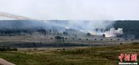 8月12日,“和平使命-2013”聯(lián)合反恐軍演中俄兩軍參演部隊在切巴爾庫爾合同訓(xùn)練場舉行全員全要素實兵協(xié)同訓(xùn)練。雙方共出動官兵近900人,坦克、步戰(zhàn)車、直升機(jī)等武器裝備約130臺,雙方導(dǎo)演部總導(dǎo)演——俄中部軍區(qū)司令員波格諾夫斯基和沈陽軍區(qū)副司令員石香元,共同到演習(xí)地觀摩并指導(dǎo)兩軍訓(xùn)練。圖為中方坦克戰(zhàn)車對恐怖武裝力量實施火力打擊。中新社發(fā) 李祥輝 攝