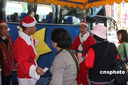 圣誕節(jié)近,臺北市公交車服務(wù)員也裝扮成圣誕老人,服務(wù)民眾。中新社發(fā) 陳立宇 攝