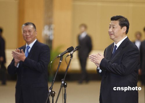 1月10日,國家副主席習(xí)近平在澳門東亞運動會體育館會見澳門社會各界人士。中新社發(fā) 盛佳鵬 攝
