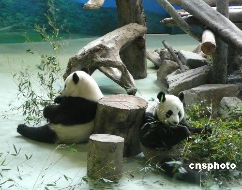 從1月26日農(nóng)歷春節(jié)大年初一正式與臺灣民眾見面到二月二十八日,大陸贈臺大熊貓“團團”和“圓圓”吸引臺灣民眾參觀人數(shù)已突破五十萬人。據(jù)臺北市立動物園介紹,雌熊貓“圓圓”二月十日出現(xiàn)發(fā)情跡象,發(fā)情期約兩周。由于“團團”還未成熟,因此在“圓圓”發(fā)情期間,兩只大熊貓被暫時隔離。目前,“圓圓”的發(fā)情期已經(jīng)結(jié)束,“團團”和“圓圓”再度團圓。圖為二月二十八日,“團團”和“圓圓”一起坐在室內(nèi)館中吃竹子。中新社發(fā) 路梅 攝