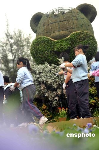 二月二十八日,來自二十間學校的五百多名學生,在香港維園協(xié)助鑲嵌大型花壇“森林運動會”花壇。據(jù)悉,今屆花卉展覽展出逾二百個來自香港、內(nèi)地及世界各地參展機構的花卉,以及造型獨特的園林景點及花藝擺設,色彩絢麗,形態(tài)各異。中新社發(fā) 譚達明 攝