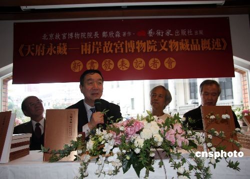 北京故宮博物院院長(zhǎng)鄭欣淼的新作《天府永藏——兩岸故宮博物院文物藏品概述》已由臺(tái)灣藝術(shù)家出版社出版。圖為3月3日下午,藝術(shù)家出版社主辦的新書發(fā)表會(huì)記者會(huì)(右三為鄭欣淼)。中新社發(fā) 陳立宇 攝