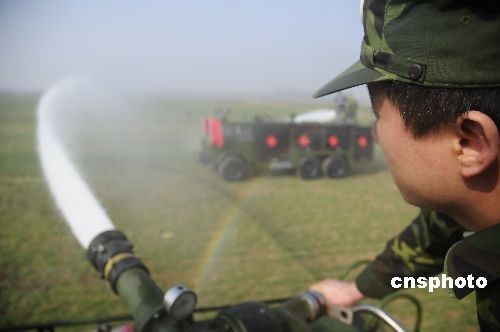 2月10日,駐南陽某部的官兵們組成了一支抗旱搶險突擊隊,出動了四輛大型洗消車,往返于河溝與麥田之間,讓干渴的麥苗酣暢淋漓地喝了個夠。中新社發(fā) 付海厚 攝