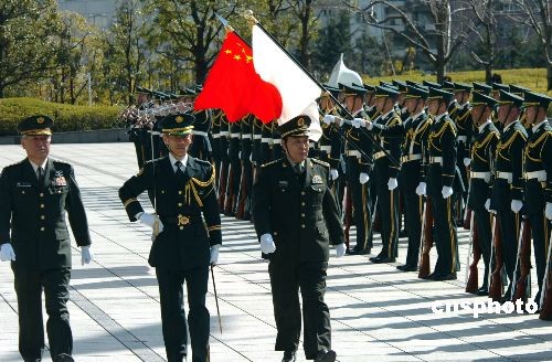 2月19日,正在日本進(jìn)行訪問(wèn)的中國(guó)人民解放軍副總參謀長(zhǎng)葛振峰上將應(yīng)邀訪問(wèn)了日防衛(wèi)省,并在陸上自衛(wèi)隊(duì)幕僚長(zhǎng)折木良一將軍的陪同下檢閱了陸上自衛(wèi)隊(duì)儀仗隊(duì)。這也是中國(guó)副總參謀長(zhǎng)第一次對(duì)日本進(jìn)行訪問(wèn)。葛振峰于當(dāng)月16日抵達(dá)日本,將于20日結(jié)束全部行程回國(guó)。中新社發(fā) 朱沿華 攝