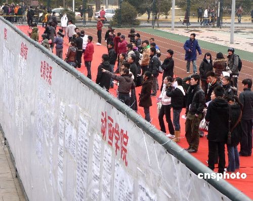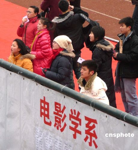 2009年2月17日下午,北京電影學(xué)院三試榜單“出爐”,541名考生入圍表演學(xué)院的最終考試。之前進(jìn)入復(fù)試的1500余名考生及家長(zhǎng)紛紛前來(lái)看榜,七成復(fù)試考生被淘汰。中新社發(fā) 玉龍 攝