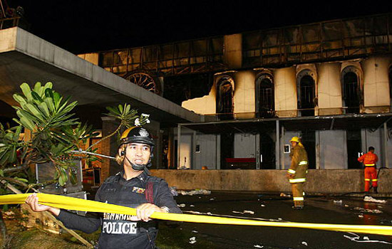 警察在泰國(guó)首都曼谷發(fā)生火災(zāi)的賽提卡夜總會(huì)警戒。