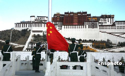 西藏:1月1日上午10點(diǎn),西藏自治區(qū)黨政軍及各屆人士在布達(dá)拉宮廣場舉行“升國旗唱國歌”儀式歡慶新年。中新社發(fā) 賈長飛 攝