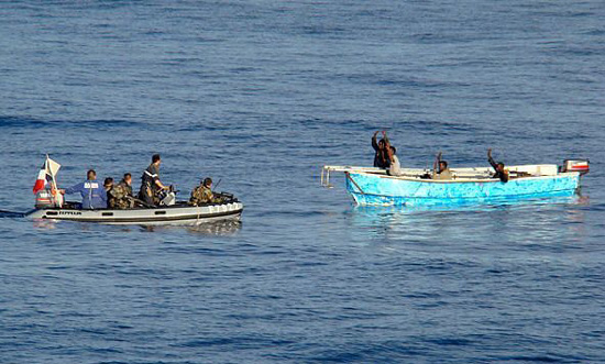 法國(guó)總統(tǒng)府當(dāng)日宣布,參加歐盟聯(lián)合打擊海盜“阿塔蘭特”軍事行動(dòng)的法國(guó)海軍當(dāng)天在亞丁灣挫敗一起海盜行動(dòng),并抓獲8名海盜。這8名索馬里人分乘兩艘摩托艇試圖強(qiáng)行登上一艘航行在亞丁灣的巴拿馬籍貨輪,法軍的一艘護(hù)衛(wèi)艦成功攔截了這兩艘摩托艇并抓獲了船上8人,繳獲了一批武器彈藥,被捕的索馬里人已經(jīng)移交索馬里當(dāng)局處理。