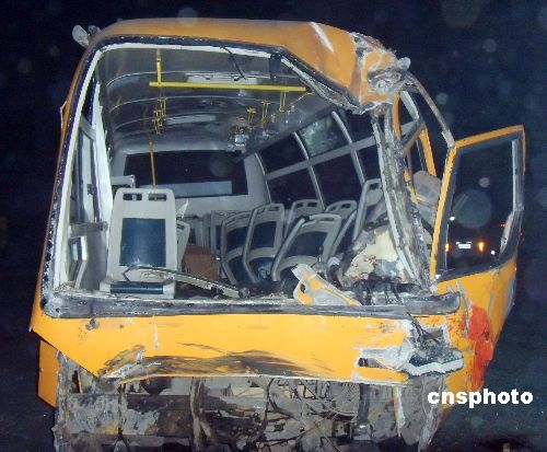 圖為被撞毀的事故車(chē)輛。中新社發(fā) 翟羽佳 攝