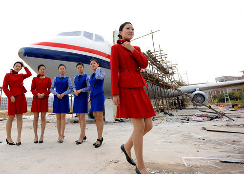 6名準(zhǔn)空姐演示了自己在課堂上所學(xué)過的知識(shí)。