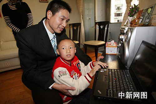 圖為龍志賢父子現(xiàn)場展示新電腦。武仲林 攝
