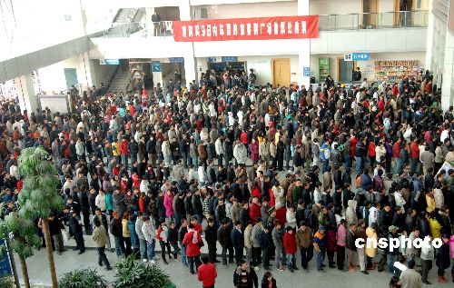 1月11日,中國春運首日早晨,福州火車站售票大廳內(nèi)擠滿了等待購買春運期間返鄉(xiāng)火車票的旅客。春運期間,福建省客運量將超8000萬人次,比去年增長1.9%。其中鐵路360萬人次,增長2.3%。中新社發(fā) 劉可耕 攝