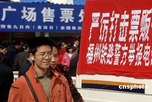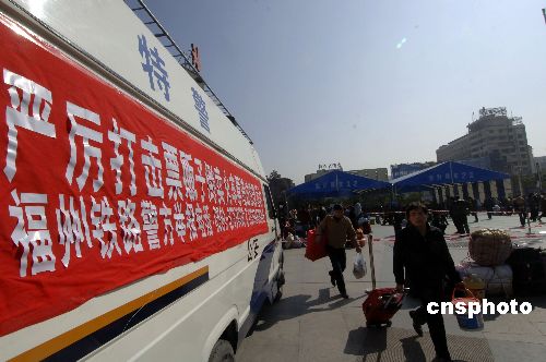 福州火車站廣場張貼舉報電話嚴打票販子。