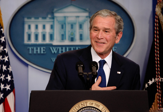 1月12日,美國現(xiàn)任總統(tǒng)布什在白宮舉行告別記者會,在充滿遺憾和留戀的悲情中,堅定為其八年任期辯護。習慣為別人取外號的布什在一開始就稱今天的記者會為“最終臨別采訪”,并對八年來一直在白宮報道他的白宮常駐記者們表達了充分的感謝。
