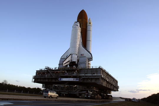 圖:美國“發(fā)現(xiàn)”號航天飛機(jī)運(yùn)上發(fā)射臺