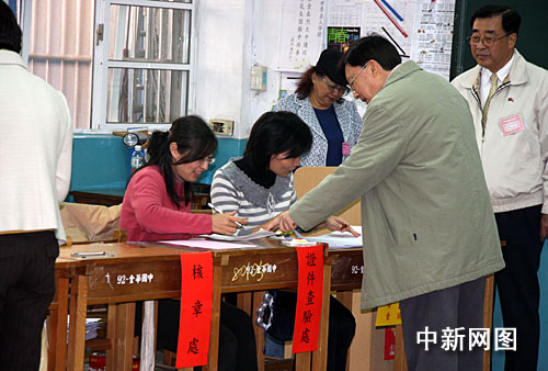 1月18日上午,備受全臺(tái)和外界關(guān)注的消費(fèi)券開(kāi)始在臺(tái)灣各發(fā)放所發(fā)放。圖為今天上午11時(shí),臺(tái)灣行政部門負(fù)責(zé)人劉兆玄來(lái)到設(shè)于臺(tái)北市金華中學(xué)的消費(fèi)券發(fā)放所領(lǐng)取消費(fèi)券。陳立宇 攝