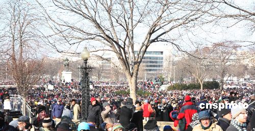 美國數(shù)十萬民眾冒著嚴寒到現(xiàn)場見證這一歷史性時刻。中新社發(fā) 李靜 攝
