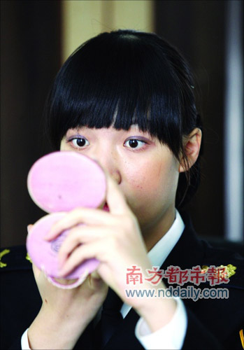 “目前服裝是春秋裝”,特勤隊(duì)負(fù)責(zé)人鄭潔華說,夏裝將是白色襯衣,目前的制服幾乎裝不下任何東西,近日每人還將配個小腰包,內(nèi)裝紙筆,負(fù)責(zé)執(zhí)法過程中的記錄和統(tǒng)計(jì)。