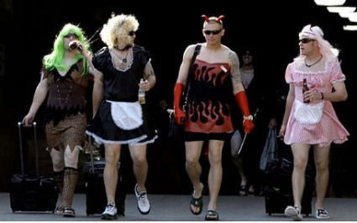 美國奧克蘭運動家隊08賽季表現(xiàn)很糟糕。9月24日晚,在阿靈頓的一場棒球比賽中,他們輸給了德克薩斯騎警隊。根據(jù)球隊的傳統(tǒng),新秀球員要穿著搖曳的女裝回家。