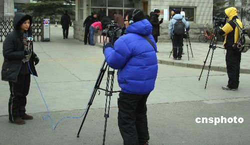 圖為當(dāng)日上午9時左右,石家莊中級法院門口來自香港的幾家媒體早已“開工”。中新社發(fā) 翟羽佳 攝