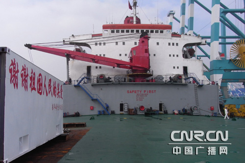 12月17日在亞丁灣海域遭遇索馬里海盜襲擊,成功逼退海盜的中國交通建設(shè)集團振華4號輪22日返回上海振華港機長興島修造基地。22日早上8:32分振華四號從長江橫沙錨地起錨向長興島行駛,10:30左右在振華港機長興島修造基地靠岸。記者吳善陽 王磊