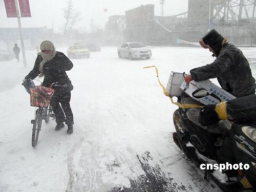 1月22日,大雪和寒潮讓遼寧東部邊境城市丹東第一次領(lǐng)略了入冬以來的第一次大規(guī)模中等強度的降雪和6級偏北風(fēng)。從21日夜間開始一場“蓄謀已久”大雪降臨遼寧大部,氣溫也隨之下降。受降雪影響,遼寧省內(nèi)多條高速封閉,給市民出行和春運帶來了一定的影響。中新社發(fā) 陳浩浩 攝