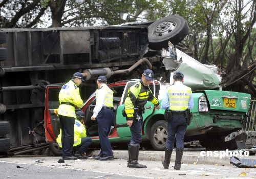 圖:香港落馬洲發(fā)生嚴重車禍 六人死亡(2)