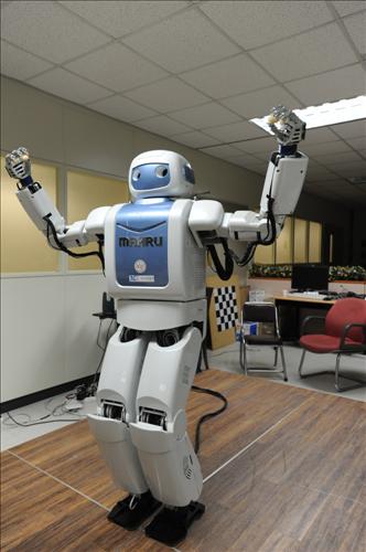 會跳舞的機(jī)器人:韓國科學(xué)技術(shù)研究院機(jī)器人研究小組劉凡材博士開發(fā)的機(jī)器人“MARU”,可同時(shí)轉(zhuǎn)動上下肢,隨著音樂節(jié)奏跳舞。