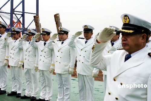 1月23日上午,上海振華港機集團在長興島基地為“振華4號”輪順利返航舉行盛大歡迎儀式,“振華4號”船長彭維源帶領29名船員整裝首次集體亮相,并向眾媒體記者和現(xiàn)場來賓介紹了抗擊索馬里海盜的具體經過。歡迎儀式現(xiàn)場,振華港機集團向每位船員頒發(fā)1萬美元獎金,并授予船長“振華功臣金質獎章”。北京時間2008年12月17日中午,中國交通建設集團所屬“振華4號”輪在途徑亞丁灣水域時遭遇2艘海盜船襲擊,有9名海盜登船,持沖鋒槍和火箭筒在甲板上與我船員對峙,我船上的30名船員用高壓水槍和自制燃燒彈自衛(wèi)并反擊。海盜在隨后趕來的國際救援軍艦直升機的威懾下,終于放棄攻擊,狼狽逃竄。中新社發(fā) 李根 攝
