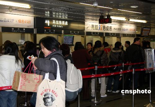 圖:臺(tái)灣高鐵購票點(diǎn)出現(xiàn)排隊(duì)購票人龍