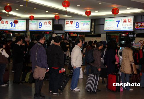 圖:臺(tái)北長途汽車客運(yùn)站出現(xiàn)排隊(duì)等車回鄉(xiāng)人龍