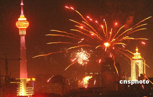 1月26日零時,北京市民紛紛走出家門燃放煙花爆竹迎接中國農(nóng)歷牛年的到來。中新社發(fā) 趙振清 攝