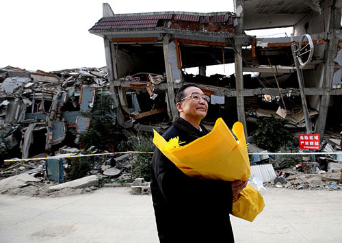 1月24日至25日,中共中央政治局常委、國(guó)務(wù)院總理溫家寶來到四川受災(zāi)最為嚴(yán)重的北川、德陽、汶川等地,和災(zāi)區(qū)人民一起過年。這是1月24日,溫家寶專程來到北川縣城遺址向大地震中遇難的同胞們獻(xiàn)花。作者:姚大偉