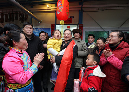 1月24日至25日,中共中央政治局常委、國(guó)務(wù)院總理溫家寶來(lái)到四川受災(zāi)最為嚴(yán)重的北川、德陽(yáng)、汶川等地,和災(zāi)區(qū)人民一起過(guò)年。這是1月25日,溫家寶在汶川映秀鎮(zhèn)板房安置小區(qū)與群眾一起過(guò)年。作者:姚大偉