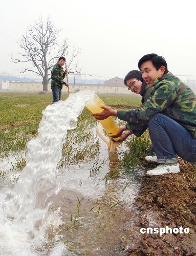 河南省溫縣南張羌鎮(zhèn)大學(xué)生“村官”幫扶馬莊村村民澆灌小麥。春節(jié)后上班以來,該縣250余名大學(xué)生“村官”組成青年抗旱突擊隊(duì),幫扶全縣困難群眾及未返鄉(xiāng)人員家屬抗旱澆麥,解決他們的后顧之憂。