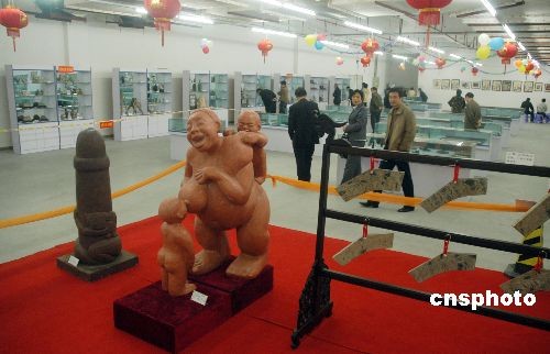 2月4日,由福州市人口計生委主辦的中華性文化展在福州萬象城舉行,此類展覽在福州尚屬首次,可是觀者寥寥。據(jù)悉,展品由“亞洲性學第一人”劉達臨與胡宏霞所創(chuàng)辦的中華性文化博物館提供,約800件,包括陶器、瓷器、雕塑等,其中最古老的是9000年前的一個陶塑女神像。 中新社發(fā) 張斌 攝