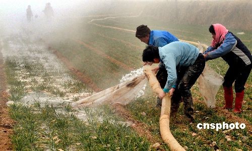 河南洛陽自2008年10月下旬以來,沒下過一場(chǎng)“透雨”,降水量較常年同期減少近八成,全市農(nóng)作物受旱面積達(dá)260萬畝,其中有30萬畝麥苗枯黃。13座大中型水庫蓄水量不足常年的一半。7.3萬人飲水嚴(yán)重困難,1.1萬人靠送水解決飲水問題。全市先后投入抗旱資金2500余萬元,抓緊抗旱。