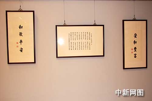 臺灣法鼓山創(chuàng)辦人圣嚴法師三日圓寂,四日移靈金山法鼓山世界佛教教育園區(qū)大殿供信眾瞻仰,圖為法鼓山現(xiàn)正展出的圣嚴法師墨寶。中新社記者:陳立宇 攝