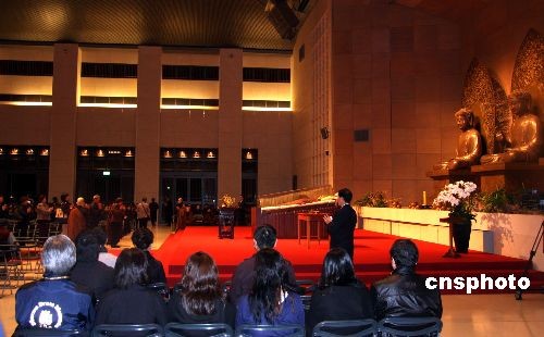臺(tái)灣法鼓山創(chuàng)辦人圣嚴(yán)法師三日?qǐng)A寂,四日移靈金山法鼓山世界佛教教育園區(qū)大殿供信眾瞻仰,圖為五日晚信眾不斷前往法鼓山瞻仰圣嚴(yán)法師法相,見(jiàn)師父最后一面。中新社發(fā) 陳立宇 攝