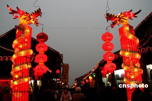 圖:古城揚(yáng)州舉行“上燈”儀式鬧元宵
