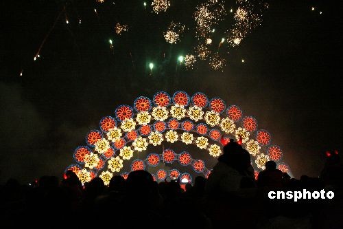 圖為孔雀開屏大型花燈,其造型別致,燈色艷美,意為“花開富貴”。中新社發(fā) 崔佳明 攝