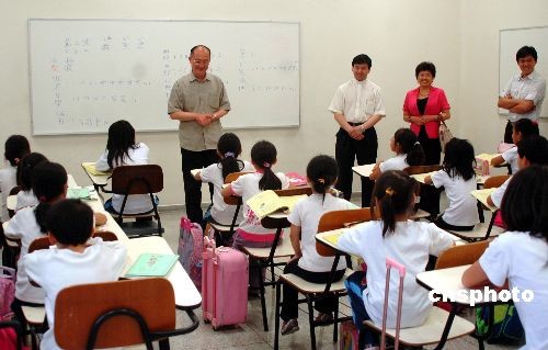 當(dāng)?shù)貢r間二月六日下午,率領(lǐng)“文化中國四海同春”藝術(shù)團到巴西慰問僑胞的國僑辦副主任趙陽,在圣保羅參觀圣本篤中文學(xué)校,向師生們了解中文教學(xué)情況,鼓勵同學(xué)們學(xué)好中文,為中巴兩國的交流作貢獻。中新社發(fā) 劉以謙 攝