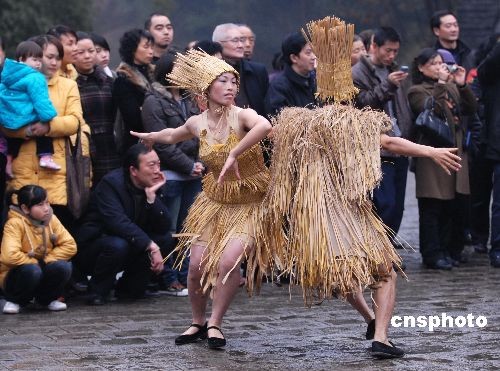 2月9日,湖北省恩施土家族苗族自治州土司城內(nèi),民間藝人通過表演擺手舞、茅古斯舞、采蓮船,唱響抬工號子、山民歌,以本民族最傳統(tǒng)的民俗慶祝元宵佳節(jié),祈福新年風調(diào)雨順、國泰民安,吸引了大批來自省內(nèi)外的游客。中新社發(fā) 沈祥輝 攝
