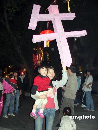 2月9日晚,壯鄉(xiāng)首府南寧在菠蘿嶺社區(qū)舉行大型元宵花燈會。燈會上的“牛燈”受到當?shù)厥忻駳g迎,大家紛紛觸摸牛燈,期待今年牛氣沖天。