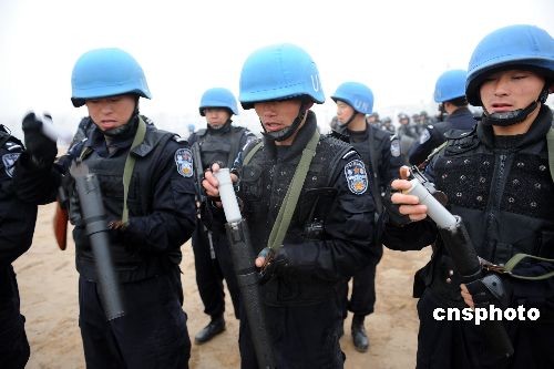 圖:中國赴海地維和警察防暴隊(duì)冒雨訓(xùn)練(4)