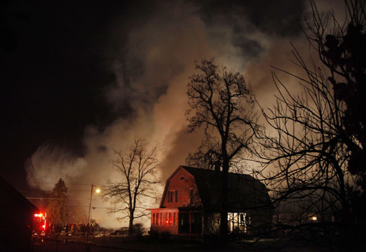 圖:美飛機在紐約州墜毀 撞上民房后燃大火(2)