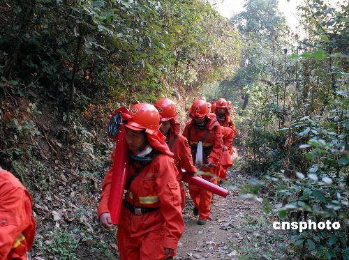 截至2月13日上午10點30分,福建沙縣山林火災的明火得到總體控制,但參加撲救火災的各方人員仍在和當?shù)厝罕娨黄鹧采,嚴防死灰復燃?2日12時30左右,福建沙縣高砂鎮(zhèn)端溪村突發(fā)森林火災,由于風大,火勢迅速蔓延,已燒毀山林二千余畝。中新社發(fā) 穆長梓 攝