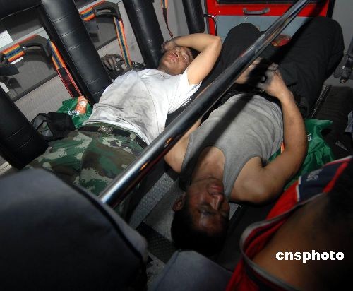 圖為13日凌晨3點(diǎn)多,疲倦的滅火消防官兵得以在消防車倉內(nèi)休息片刻。中新社發(fā) 穆長梓 攝
