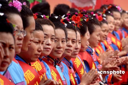 2月13日,湄洲女身著“媽祖服”喜迎臺(tái)灣進(jìn)香信眾。當(dāng)日,428名臺(tái)灣媽祖信眾首次從本島客運(yùn)直航湄洲謁祖進(jìn)香。中新社發(fā) 王東明 攝